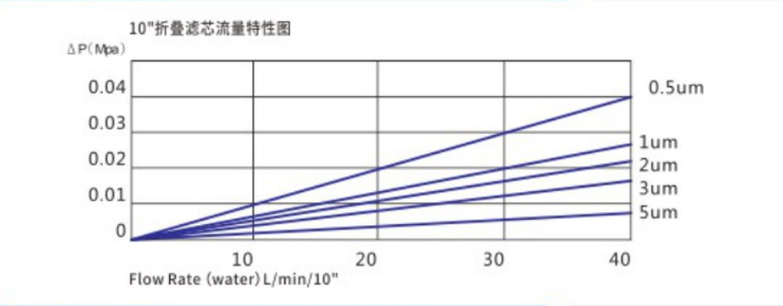 2、濾芯的精度,相同條件下,相對來說精度越大,孔徑越粗的折疊濾芯,其流量比精度細的要大。