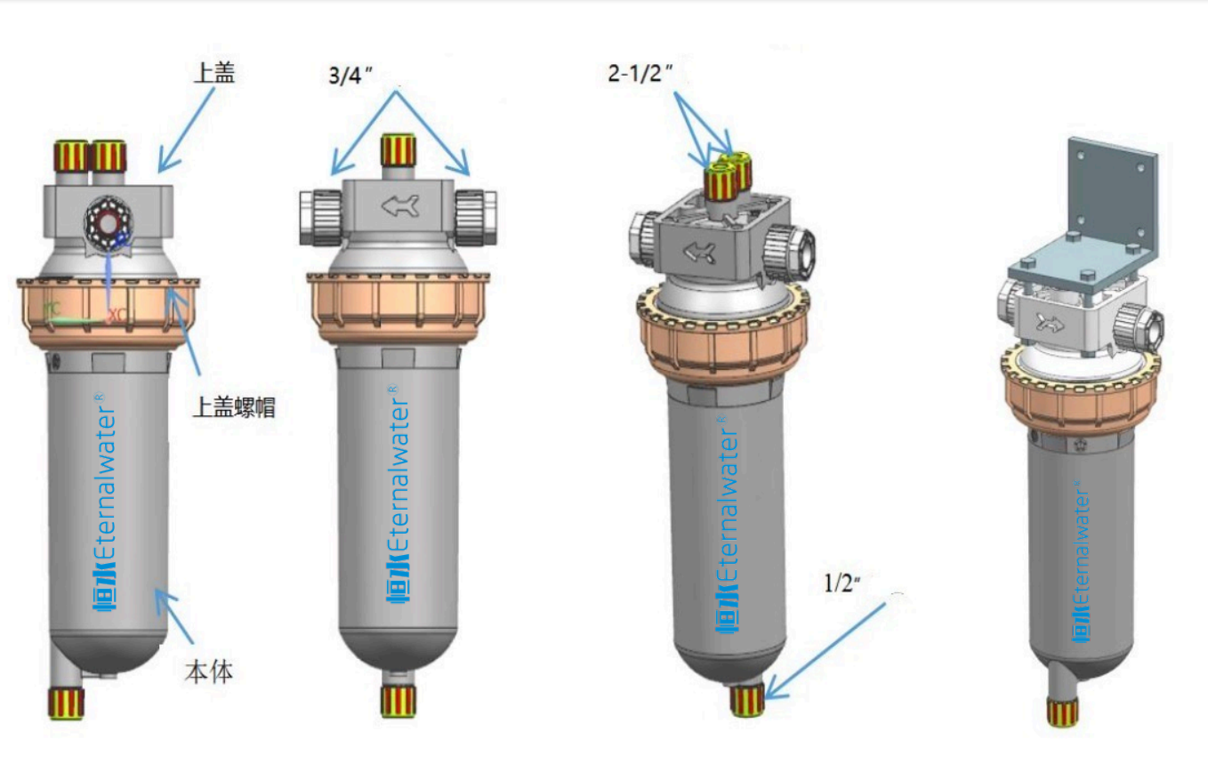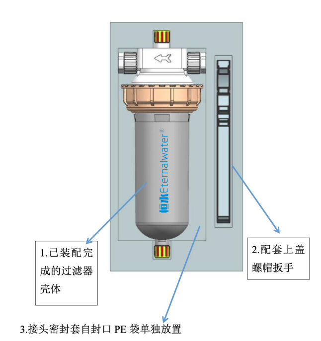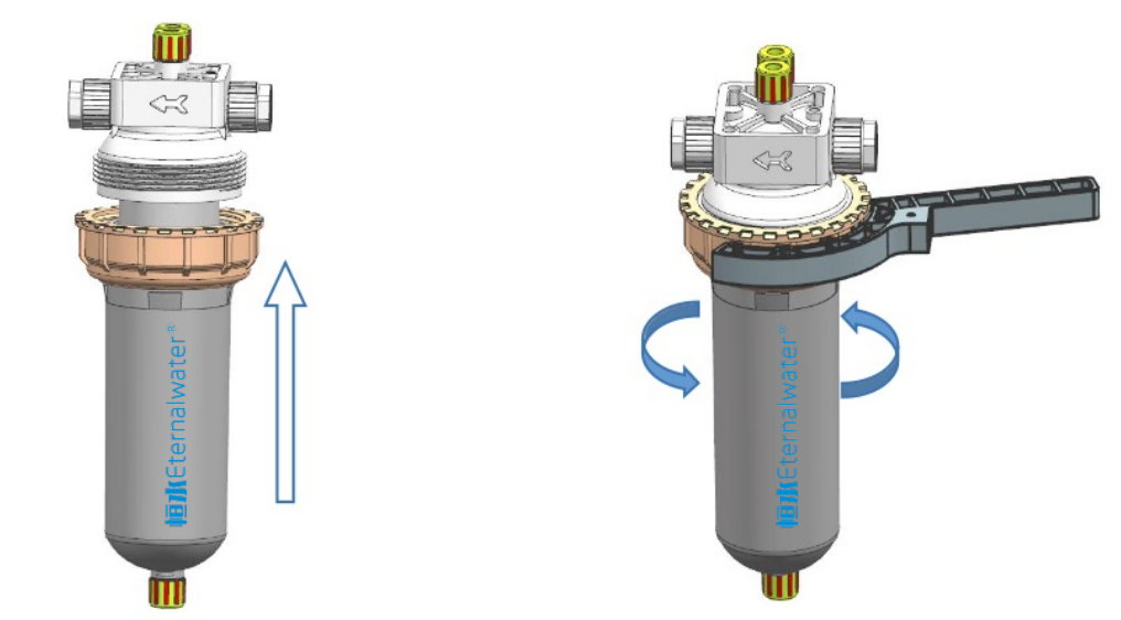 3.把過(guò)濾器本體裝入過(guò)濾器上蓋 4.使用配套扳手旋緊上蓋螺帽
