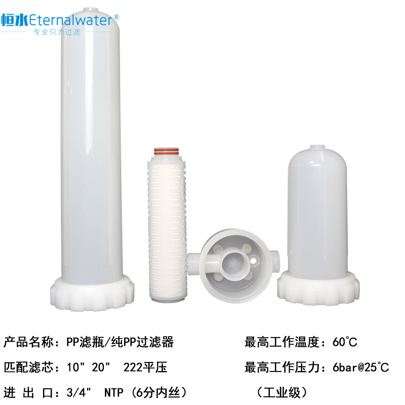 單芯聚丙烯(PP)過濾器,全純進口PP一次性注塑制成。