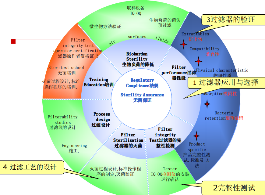 過濾工藝驗(yàn)證是指針對(duì)具體的待過濾介質(zhì),結(jié)合特定的工藝條件而實(shí)施的驗(yàn)證過程,一般包括細(xì)菌截留試驗(yàn)、化學(xué)兼容性試驗(yàn)、可提取物或浸出物試驗(yàn)、安全性評(píng)估和吸附評(píng)估等內(nèi)容。如果過濾后,以產(chǎn)品作為潤濕介質(zhì)進(jìn)行完整性測(cè)試,還應(yīng)進(jìn)行相關(guān)的產(chǎn)品完整性測(cè)試驗(yàn)證。除菌過濾工藝驗(yàn)證可以由過濾器的使用者或委托試驗(yàn)檢測(cè)機(jī)構(gòu)(例如:過濾器的生產(chǎn)者或第三方試驗(yàn)室)完成,但過濾器使用者應(yīng)最終保證實(shí)際生產(chǎn)過程中操作參數(shù)和允許的極值在驗(yàn)證時(shí)已被覆蓋,并有相應(yīng)證明文件。