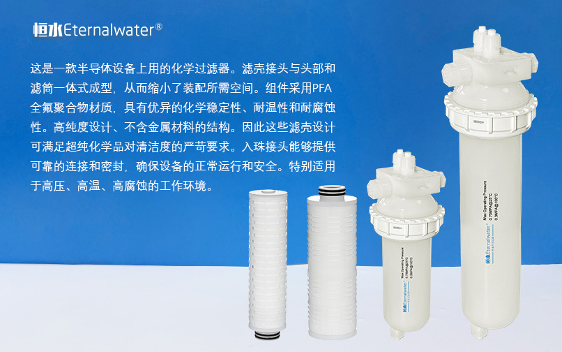 半導體制造過程中,廠務系統為FAB提供生產制造用潔凈的工藝氣體,超純水,超凈電子化學品。大批量,長時間不間斷的供應,對過濾的穩(wěn)定性提出了很高的要求。恒水過濾為廠務系統過濾提供專有的過濾產品。大流量濾芯的產品,全氟耐腐蝕產品,以及高精度高效率過濾產品,為廠務系統的安全供應提供了服務。